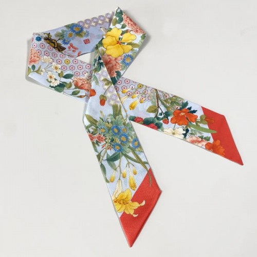 • [오색채담] 민화패턴 실크 트윌리 스카프(라이트블루)