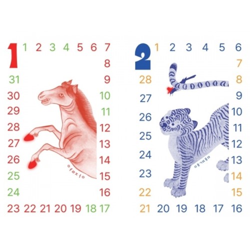 각 달마다 한국 전통 민화 속 상징적 동물, 식물, 사물들을 현대 감성으로 재해석해 디자인하여,